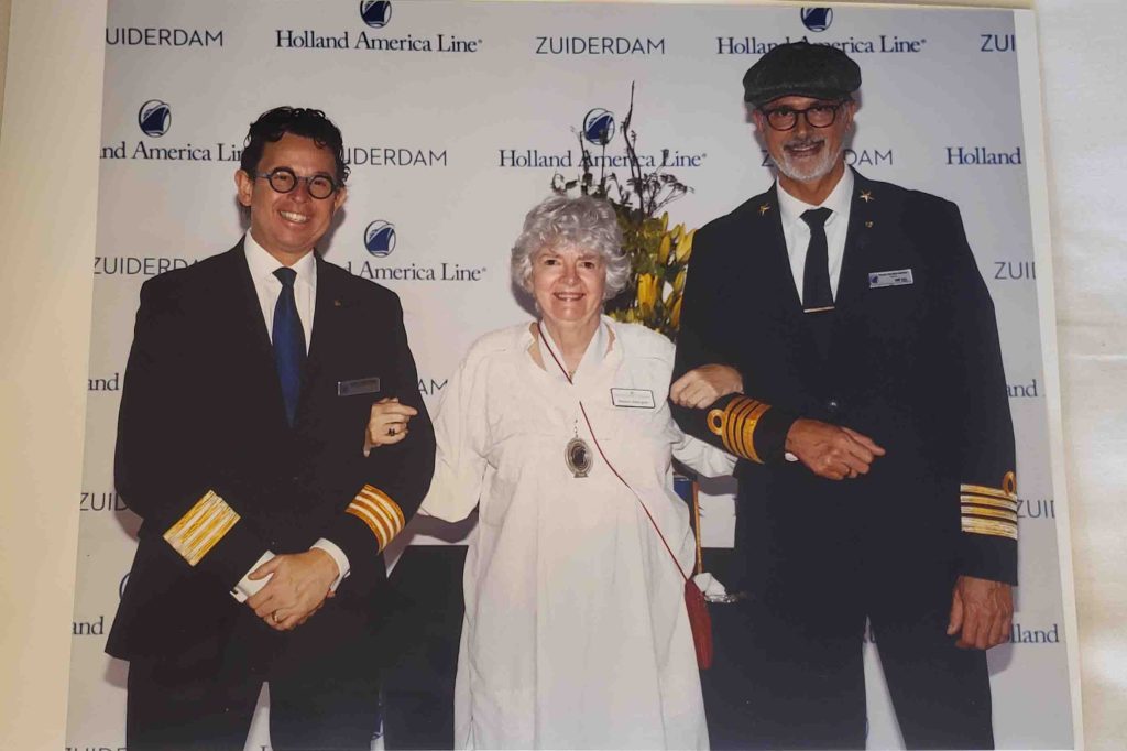 At four o’clock, I had to be in the Crow’s nest to receive my Platinum medal for 700 days sailed on Holland America. The medals came quickly, thanks to five circumnavigations, but this is the last one before President’s Club and that’s 1400 days. I should live so long. Anyway the ship took a nice professional picture with the Hotel Manager, Henk Mensink and Captain Frank van der Hooven: