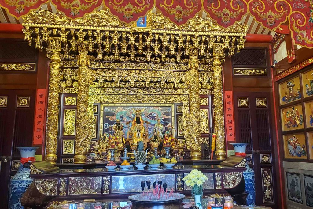 It was a great ride all in and around the old neighborhoods, Indian and Chinese. I took a lot of silly pictures just to be polite, and because it was so nice to be able to without the structure, and dirty windows, of a tour bus. I let him give me some more time on Chew Jetty, so he could rest, and got my best picture. This is Linda’s ancestral temple: