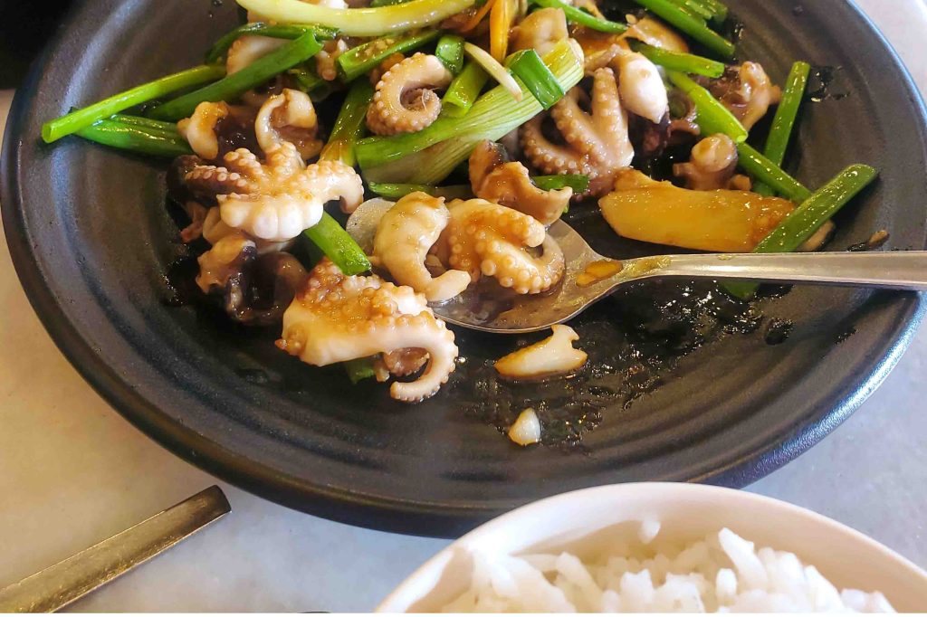 There was a seafood restaurant across the street from the aquarium, so I decided to brave it. It had a good few of our crew members there, which is a decent indicator. It did have fish tanks, too, just a lot of the seafood didn’t look to healthy. I made sure my crab was wiggling desperately, before I agreed to him. I reversed the treatment, having chili squid and ginger and spring onions crab.