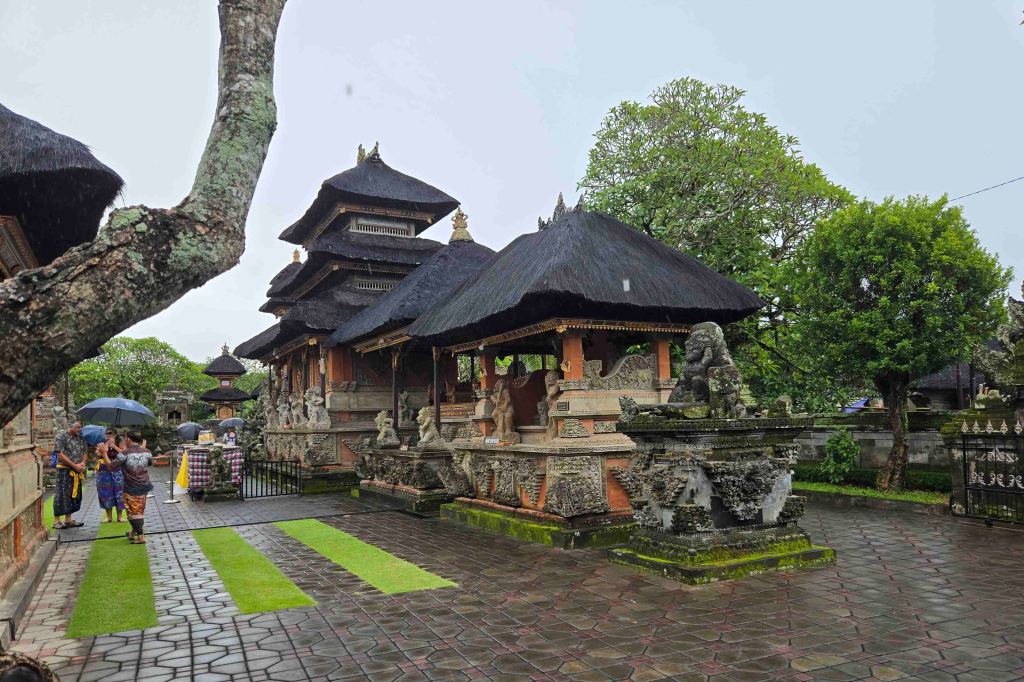 We met Made Seneng, and his wife Dewi right where the ship docked in Denpasar, at the very civilized hour of 9:00am. The nine of us had just piled into Made’s van when the skies opened. It came down in buckets, soon turning the highway into a wading pool, with rivers in the monsoon ditches on either side. It was bad enough for us, but you had to pity the motorcyclists, in their poly ponchos, whizzing through six inches of water, beside us. They were getting somewhere faster than we were, but it looked like a pretty unpleasant, high-risk operation to me.