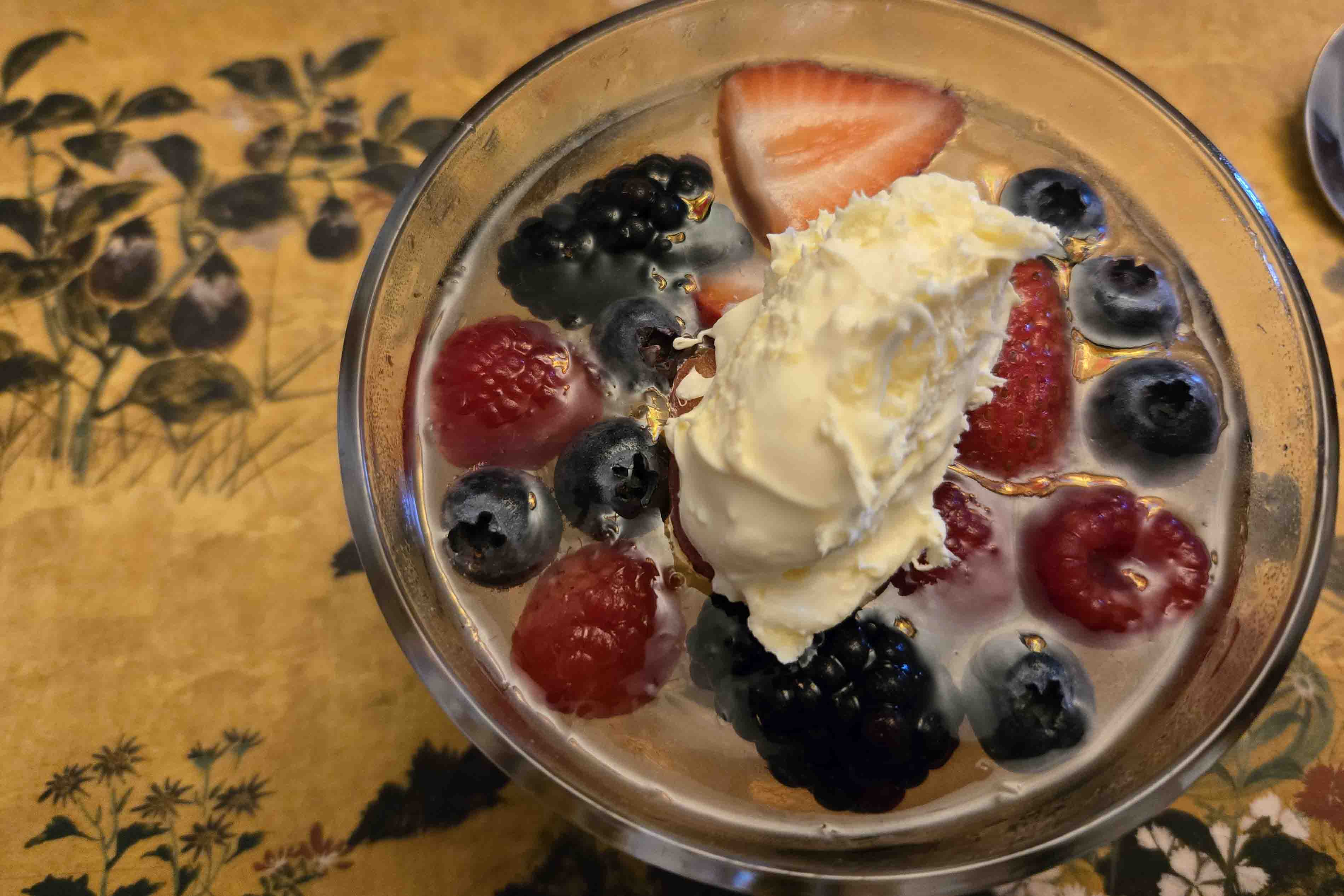 Dessert did have Proseco in it, a whole bottle, but I am assuming the alcohol had evaporated. That’s my story and I’m sticking to it.