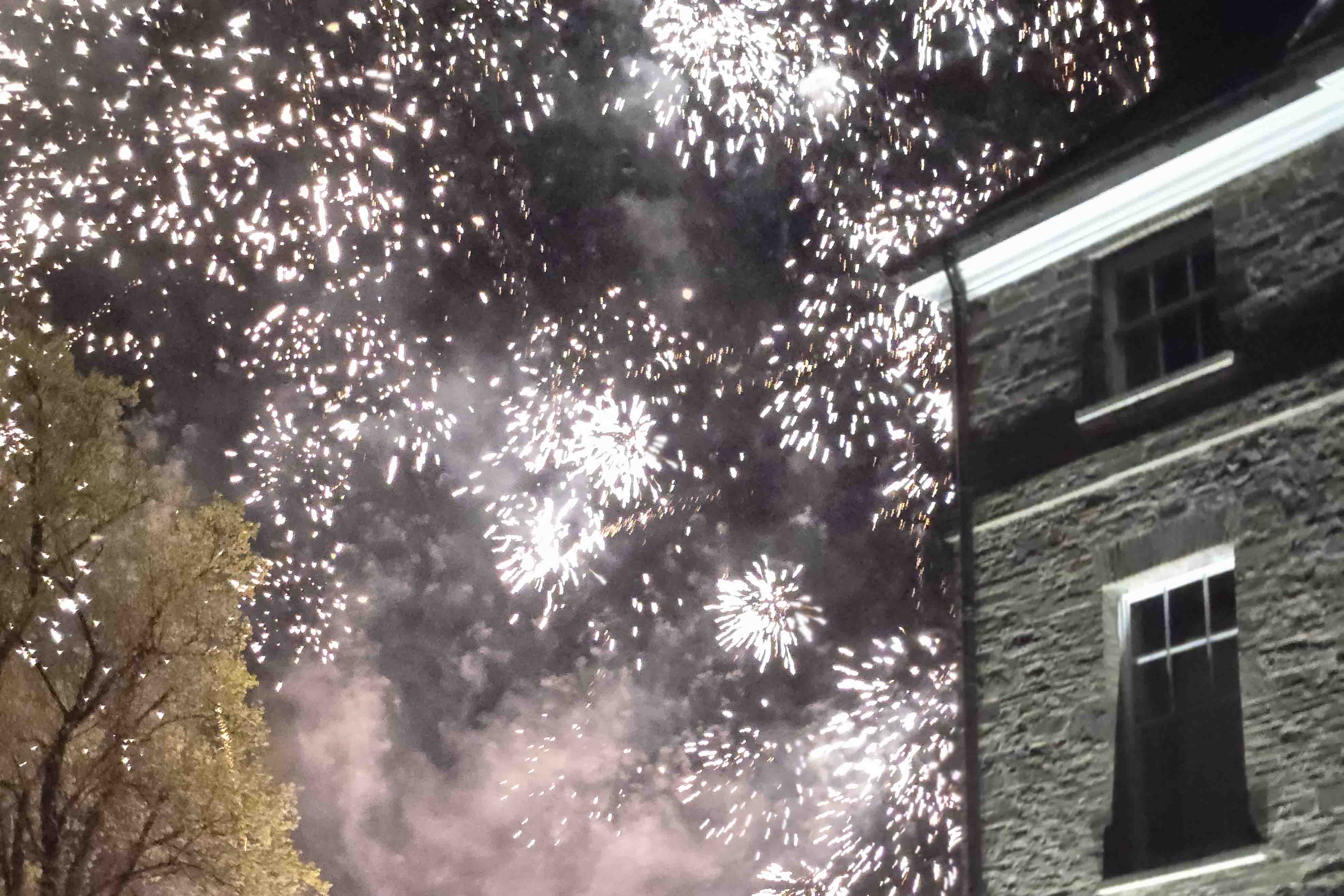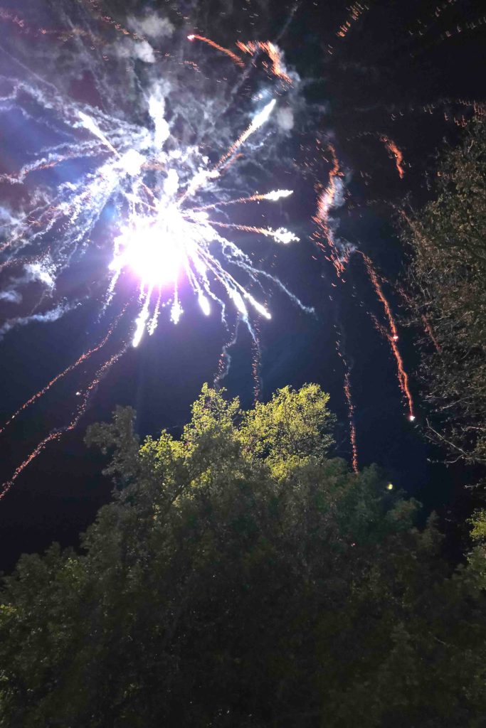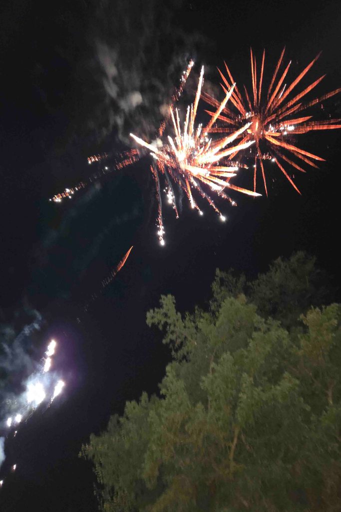 See that window at the upper left of the building? It was mine!!! Can you imagine what I would have thought if I had been all nicely tucked in for the night? Huge thanks to my hosts for keeping me out! I suppose you also want to know what the fireworks display was in aid of. You are demanding. Some staff members I knew were coming in the front door, while Andy and I were still talking in front, so we asked. It was a wake. And I thought I knew how to do a celebration of life. Next time, and it will likely be my own – fireworks.