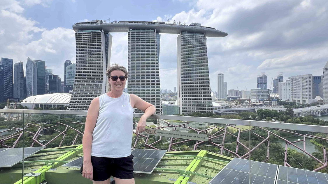 I stayed on board and worked most of the day. I have been here so often and as recently as December. I worked on lots of things: regular travel agent follow-ups, newsletters, birthday cards, electronic ones for friends, and and paper ones for Distinctive Voyagers on board. There’s always plenty to do. Joanne was out and about in Singapore. She went all over the place like: