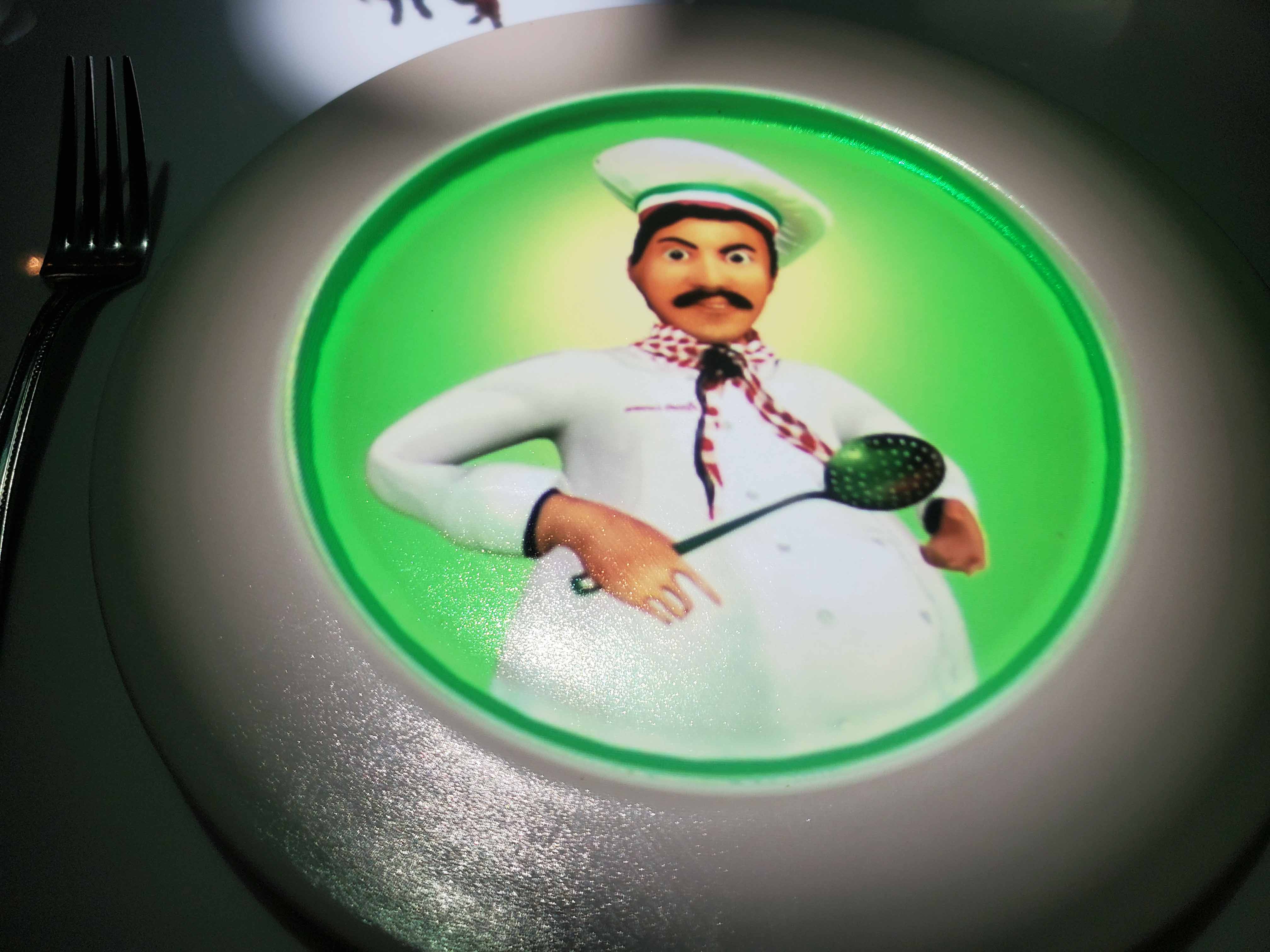 Chris and I had a great dinner to go to. We were joining Jim and Marilyn Atkins for dinner at Le Petit Chef. Jim and Marilyn took over the Holland America world cruise from me, when I had to give it up in 2016, and have been doing it ever since, until the pandemic hit. They were anxious to meet me, and I, them. We had such a wonderful time taking pictures of our animated plates, that we forgot to have the server take a picture of us. You’ll have to settle for a picture of the winning chef and his dish. Yum.