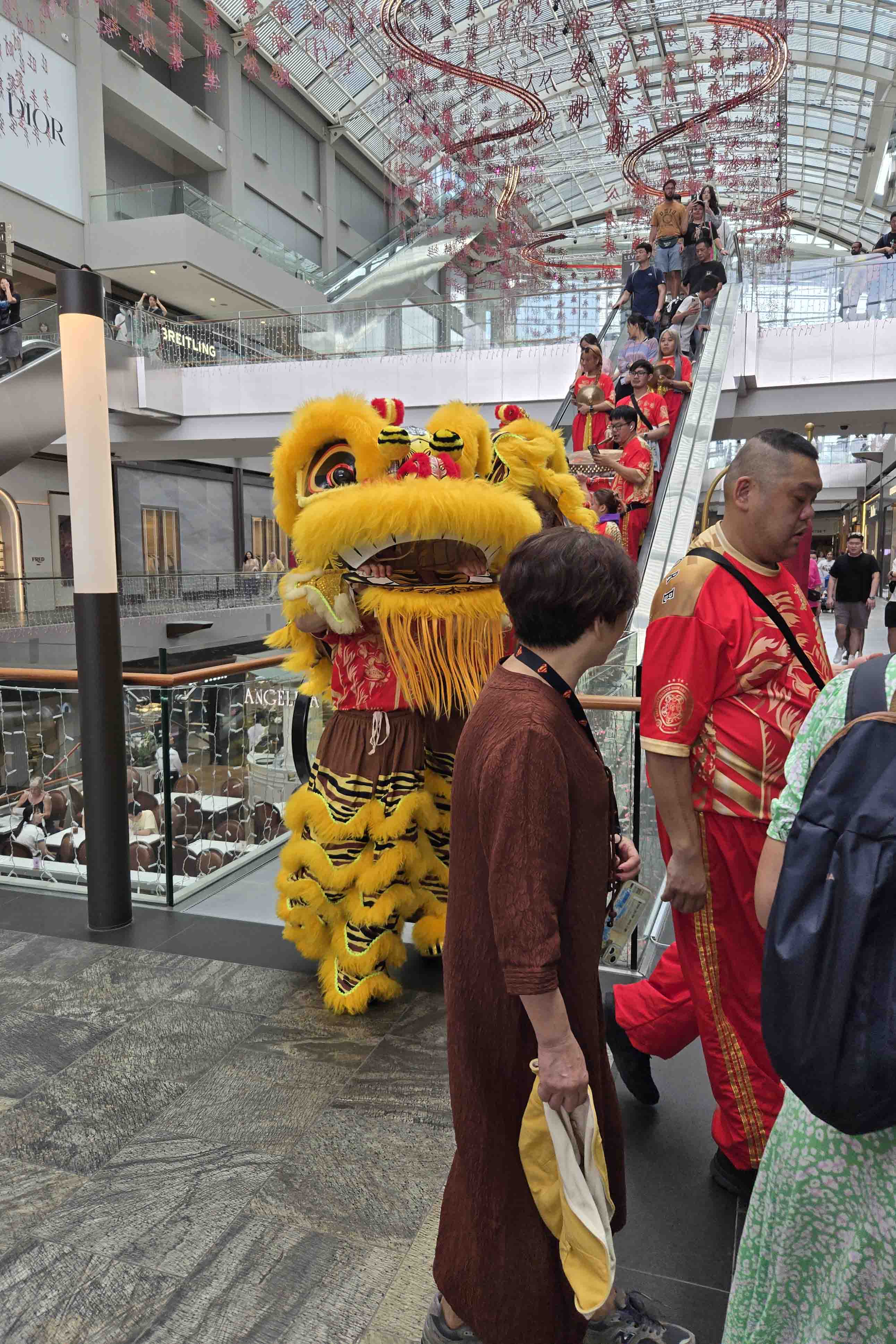 And I met this lion dance coming down the escalator: