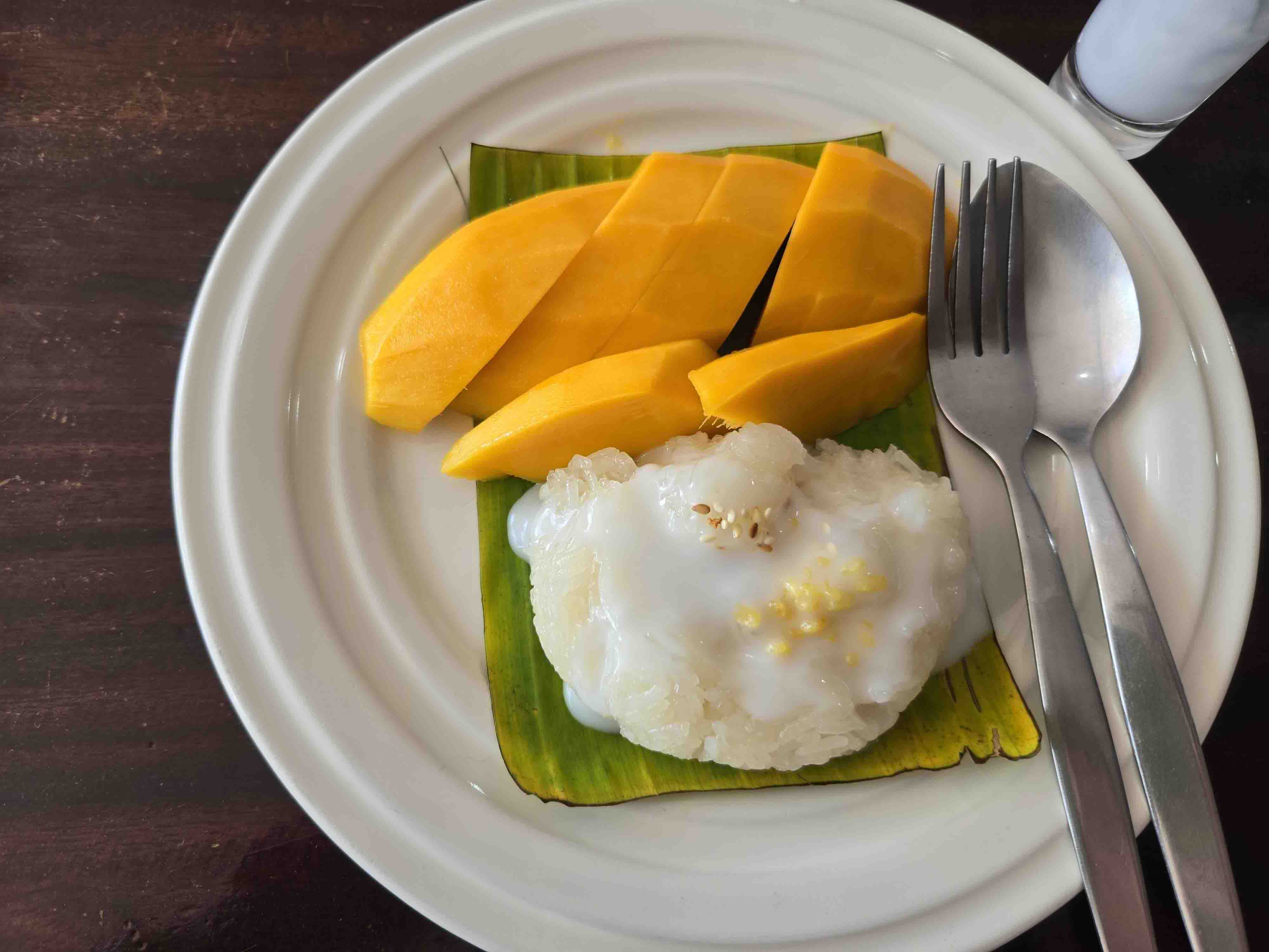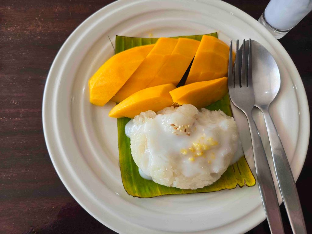 I washed that down with a couple of Singhas and asked for Mango-Sticky Rice for dessert. They didn’t have it, but I had seen a picture of it at another restaurant closer to the pier. Next stop: