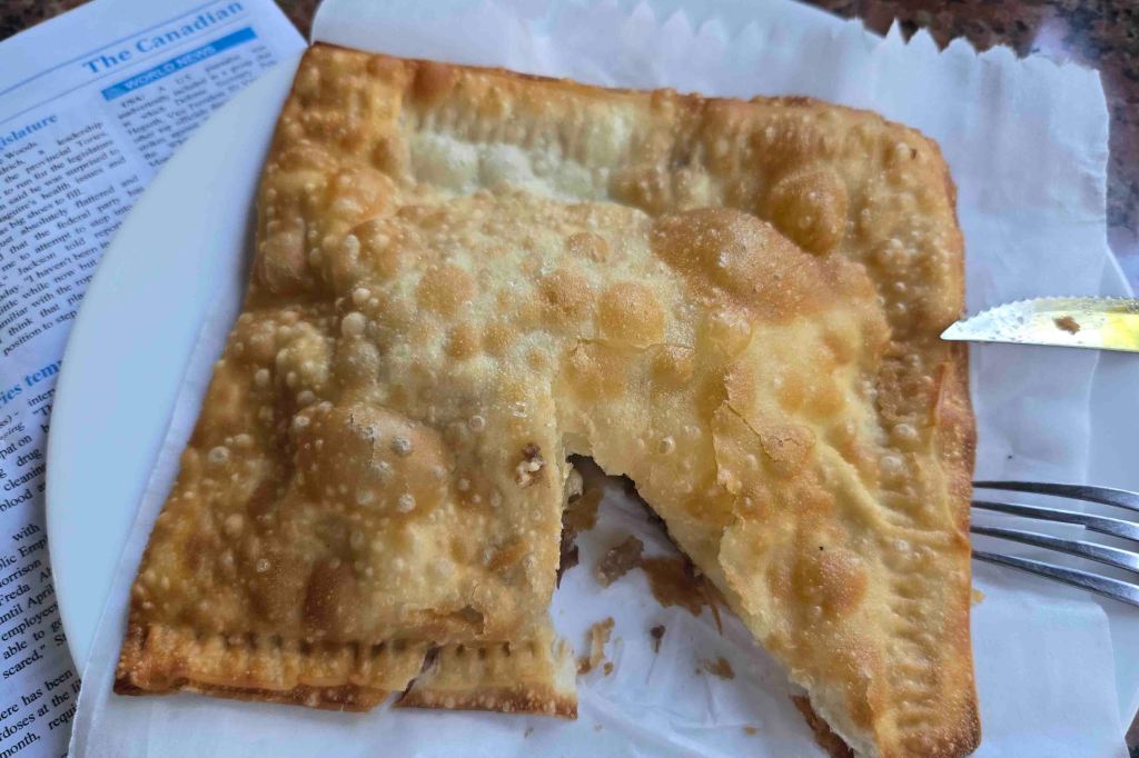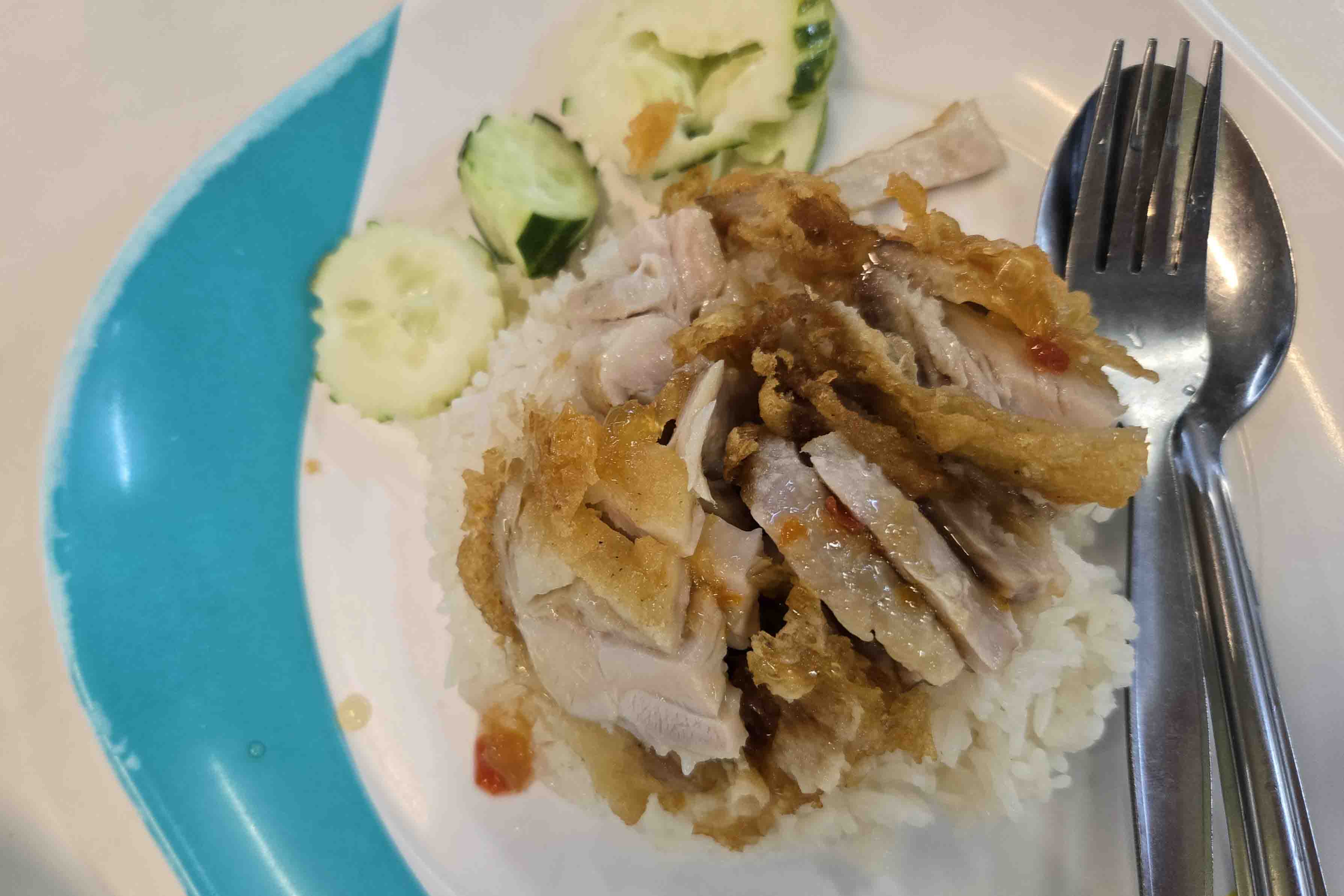 I walked to the end of the road, but nothing held more appeal than Sylly P’s relative’s restaurant. I was hungry, and it was so good, that I ate half of it before I remembered to take a picture for you.