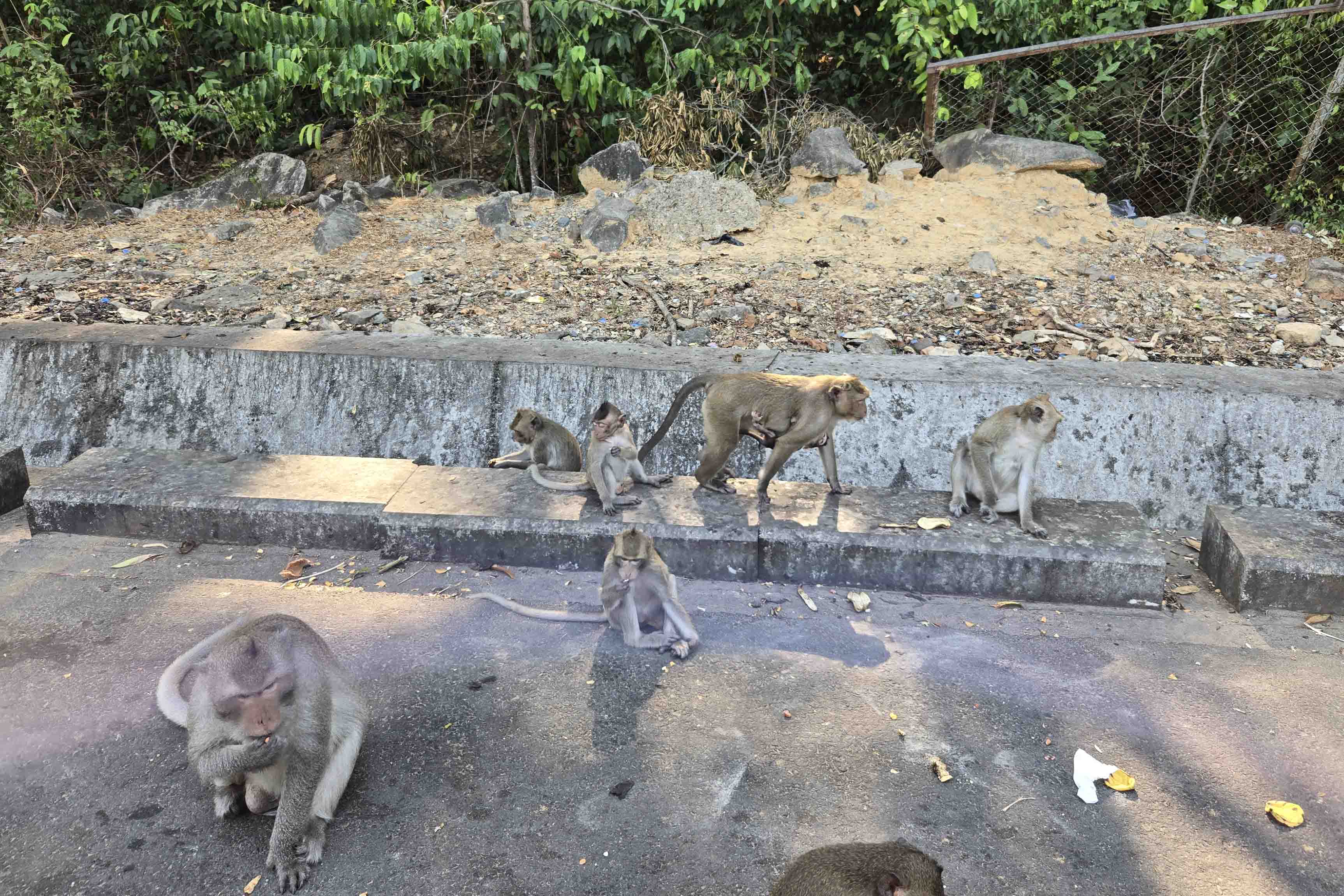 I later found out it was a case of arrested development, though, as many of the developers had failed during COVID and the Chinese gambling tourists weren’t coming in droves, as planned. There are still monkeys in the central mountain park area, and we could visit them, and feed them, from the comfort and safety of the tuk-tuk. Don’t miss the mother and baby in the center of the picture.