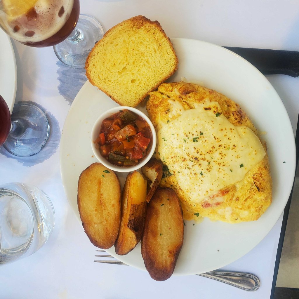 They know they have a good thing and they know how to charge. Lunch, with no alcohol, was more expensive than either of the dinners, one of which had wine, the other beer. But, food fans, take a look at the food: Dave’s omlet: