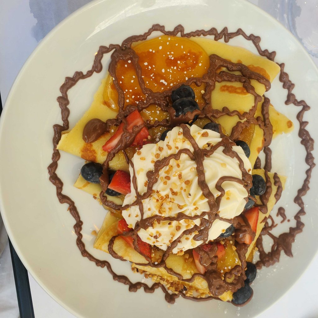 The crêpes came with orange or Nutella sauce. I asked for both and did the Nutella decoration myself. I did finish it but didn’t have dessert.