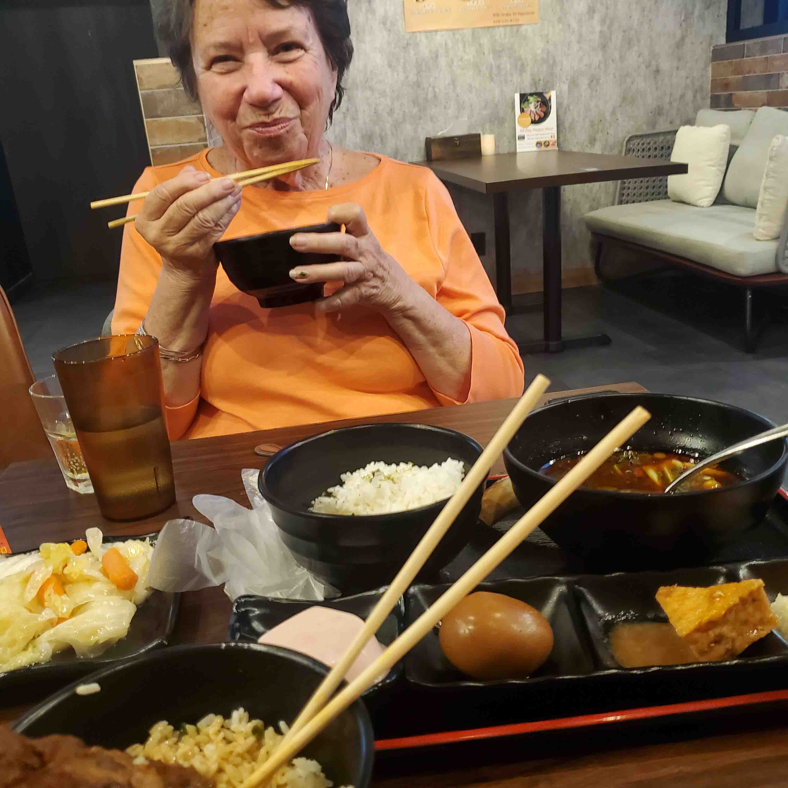 It was Sunday, September 22, so time for something a bit special. SilverSea charges way too much for its specialty dining. It was $80pp at Kaiseki, their Japanese restaurant, for dinner. I still wanted to try it, and after what Andrea paid for her $10,000 cruise, which was nothing at all, she was willing to spring for it, for both of us. Then I offered to pay for the Rands, since they are clients, and the Canadian government would partner with me in paying for it. Off we went, for our special dinner. The service was way too slow, considering there were only two tables of four in the entire restaurant. I’m sure they would blame it on Barbara’s foie gras, but that isn’t fair, as the other restaurants have no trouble supplying it in a timely manner. We finally had to tell them we wanted to go to the 9:30pm show and would they please get us out by then. They did, but we had to skip dessert, which, luckily, is never the best part of a Japanese dinner. But the edamame and chawanmushi were delicious, as were the sashimi and tempura. Our main course was wagyu beef and lobster tail, and there was nothing to fault there either.