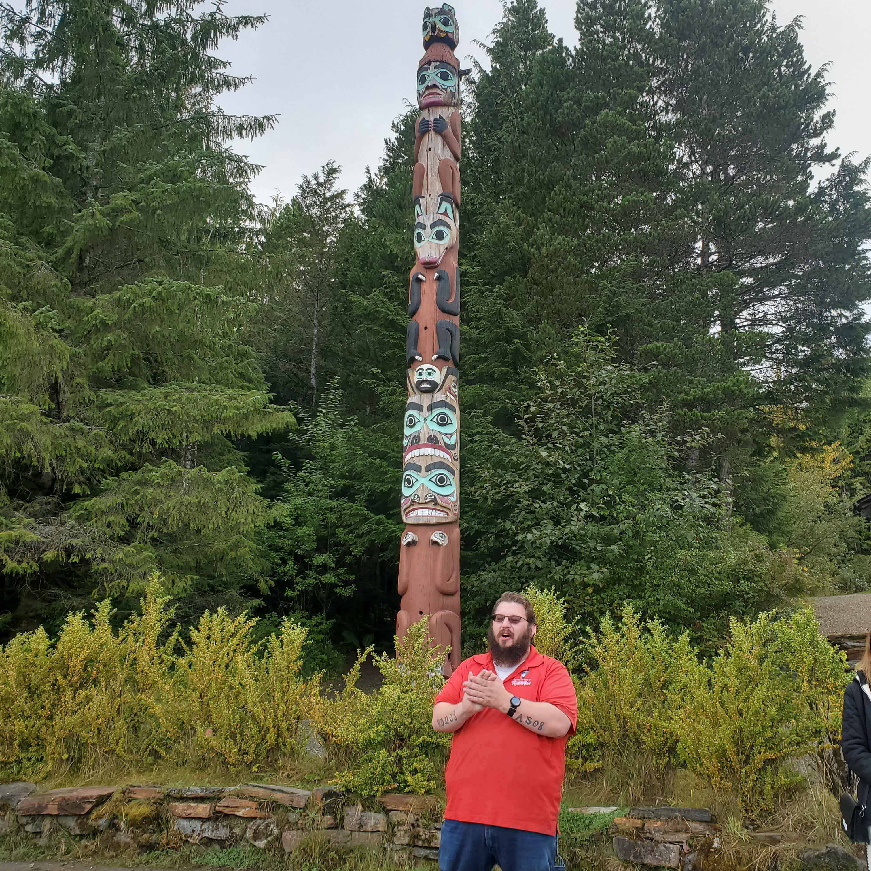 Then Thomas took us out to the Saxman Totem Park and explained the difference between poles that honor and poles that shame.