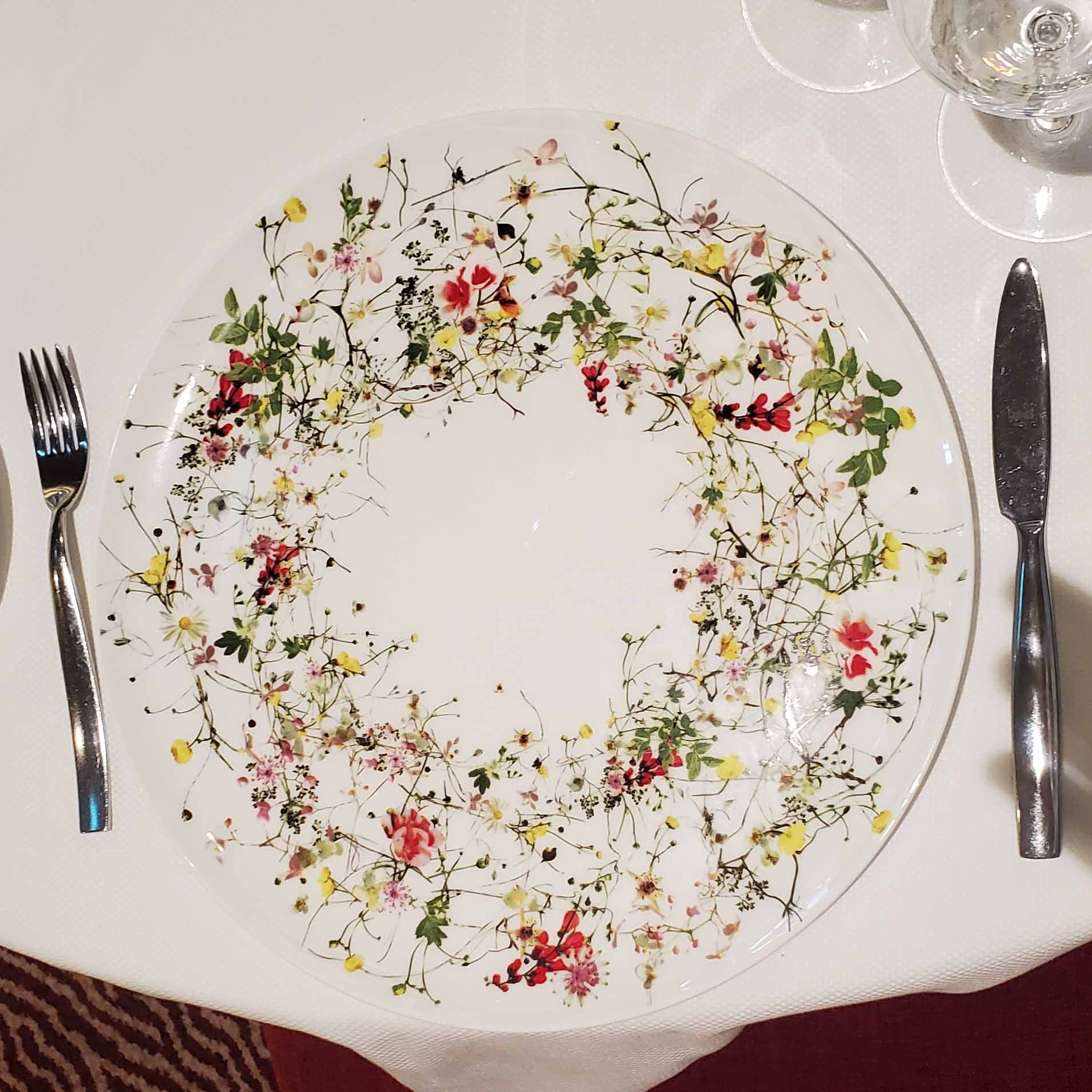 Six people did. It was a lively dinner in Atlantide with the Rands, Pherwanis, and Mitchells. Atlantide is the Main dining room, where the food is delicious, the attention, solicitous, and the china, absolutely gorgeous.