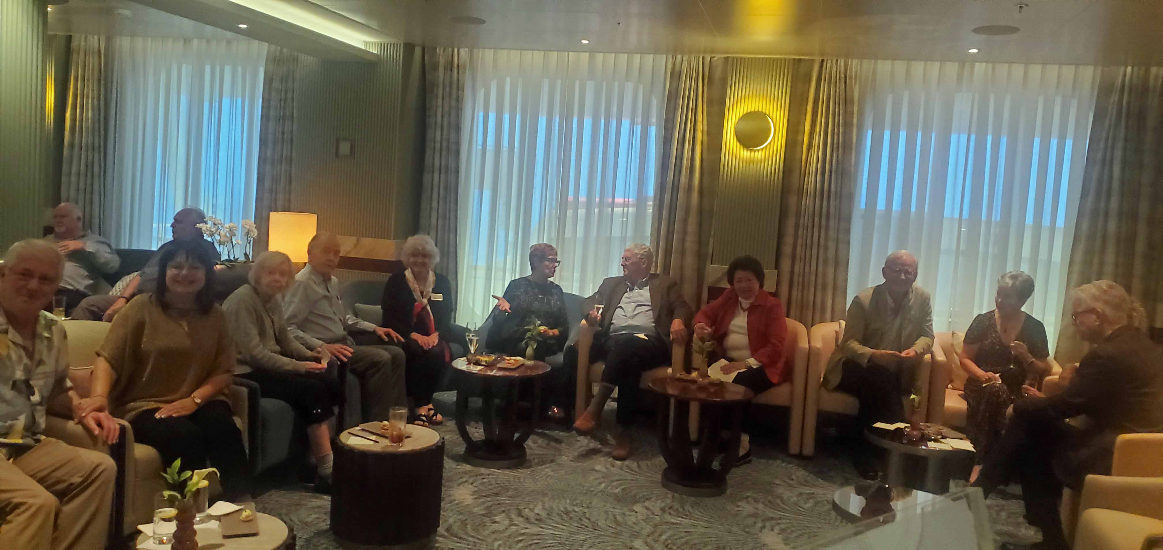 All that communication worked to drive people to our Welcome Reception, though, and 33 out of 44 people were present in the Observation Lounge at 5:00PM. SilverSea had set it up well, in a nice big circle and it was easy to talk to all the guests and get a little info on everyone. It’s a very nice group. Our cocktail reception led right into the Captain’s Welcome Reception, and I invited anyone who wished to join us for dinner, afterwards, to please do.