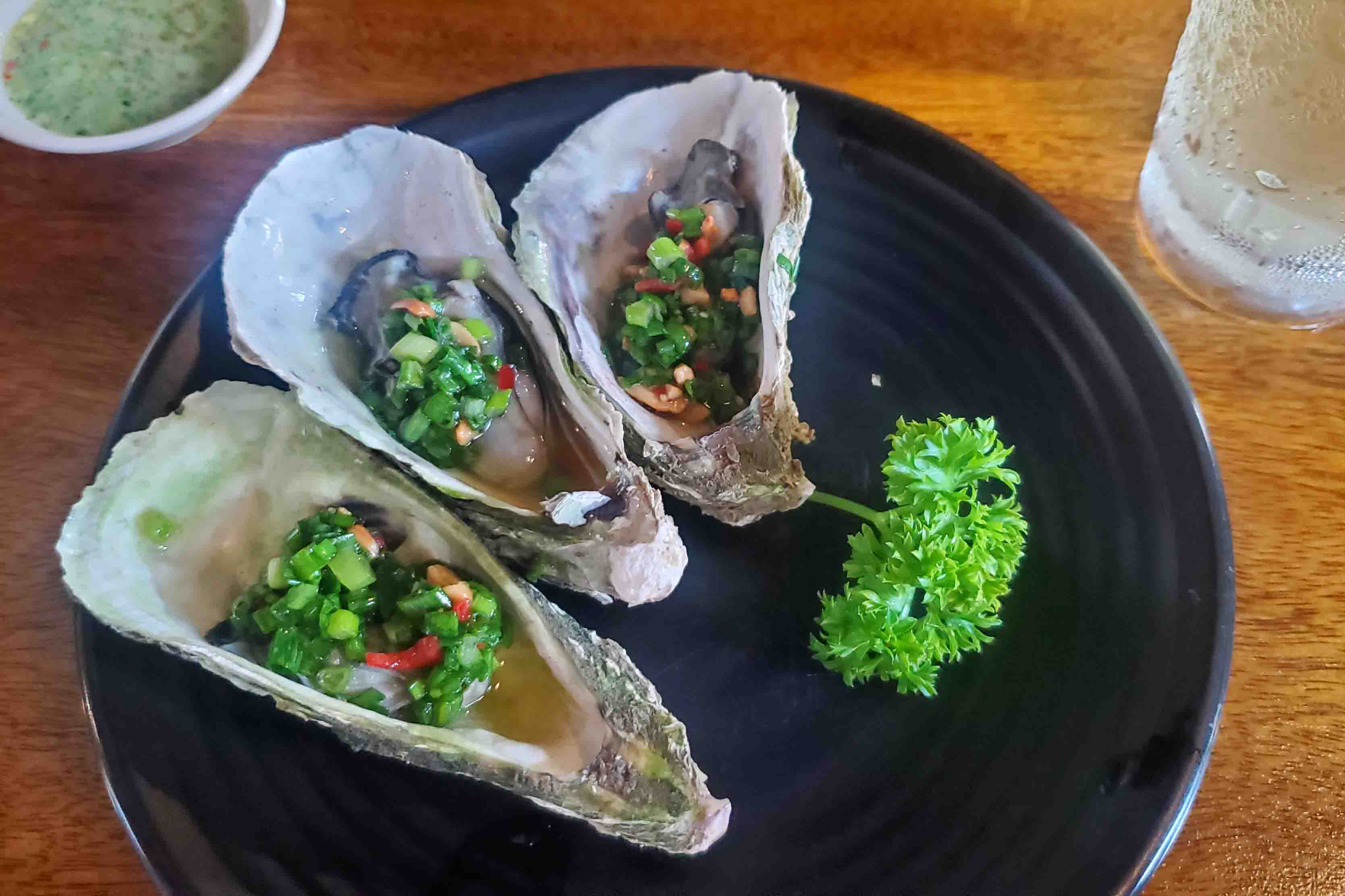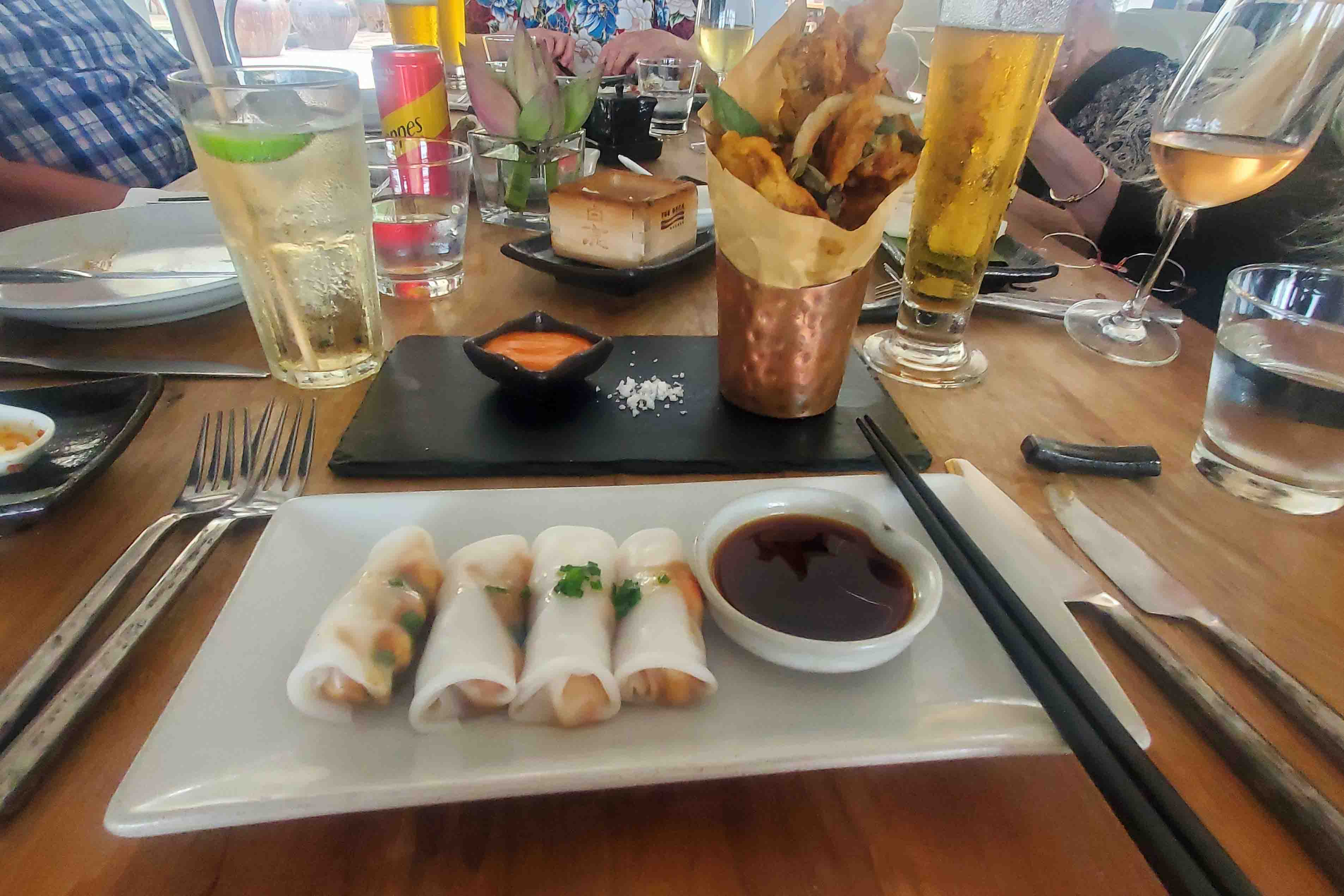 My friend wasn’t into raw oysters, so I had another three. And we were both happy with the beer. The next place served us Do-It-Yourself spring rolls, which would probably have been better if they had done them for us, but they were OK. And the last place was the worst. All we got was a beer in a very nondescript bar, right next to a gorgeous restaurant on the beach which was mostly empty. They needed to charge us more and put us in there to end on a high.
