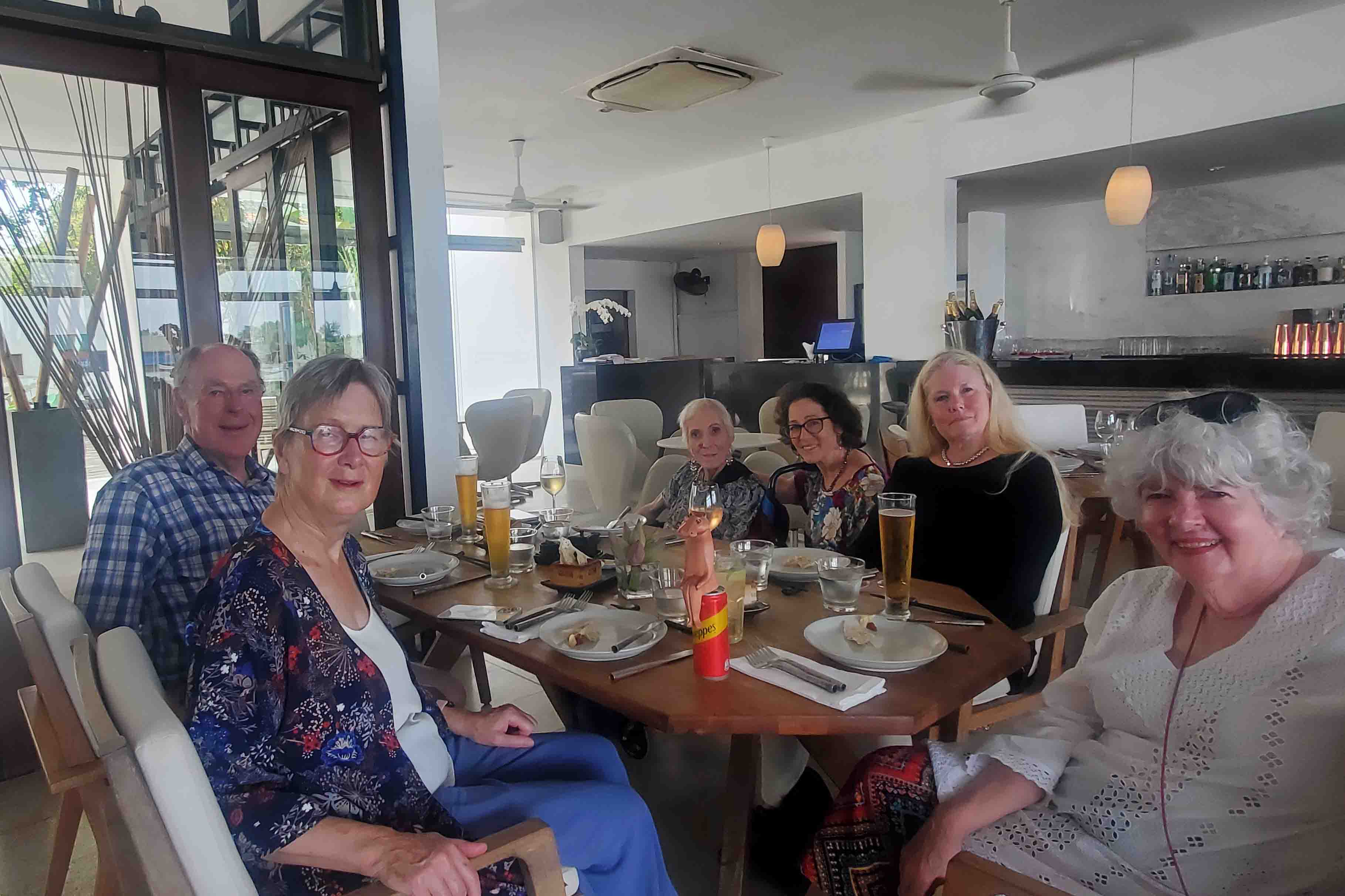 On the way to dinner Liz and I met the the Indian American family. They had an idea for the Farewell Party. They had at least 2 bottles of untouched champagne they were willing to donate, plus maybe some gin and rum. Liz and I had a half-bottle each, too. Could we find a venue where we could serve it?