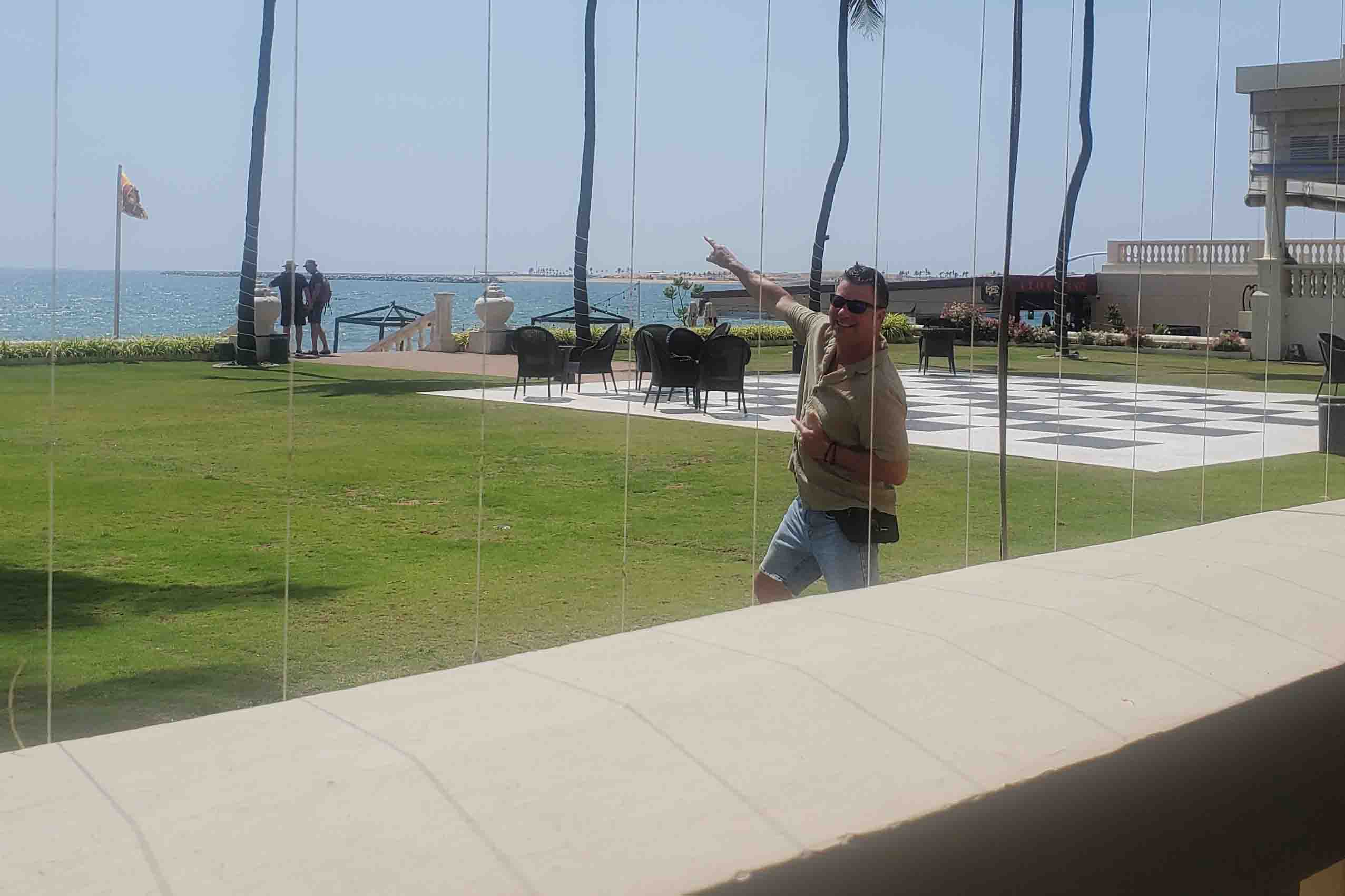 We were still at sea, the next day, April 19 and it was just an ordinary work day, but the weather was still nice, so Liz and Amanda and I were on Deck 8 again at 6. Liz, counted as having embarked in Cape Town, had a party to go to,. Amanda and I had pasta and garlic bread – which is a very white pizza, at the Chef’s Table. I went back to my stateroom and had a 58 minute WhatsApp call with Patrick and Rose, back in Montreal, planning some of our summer theatre outings. Then I went to see Michael Halverson, because I am a sucker for Cirque du Soleil people. He turned out to be a magician, but at least, a good one.