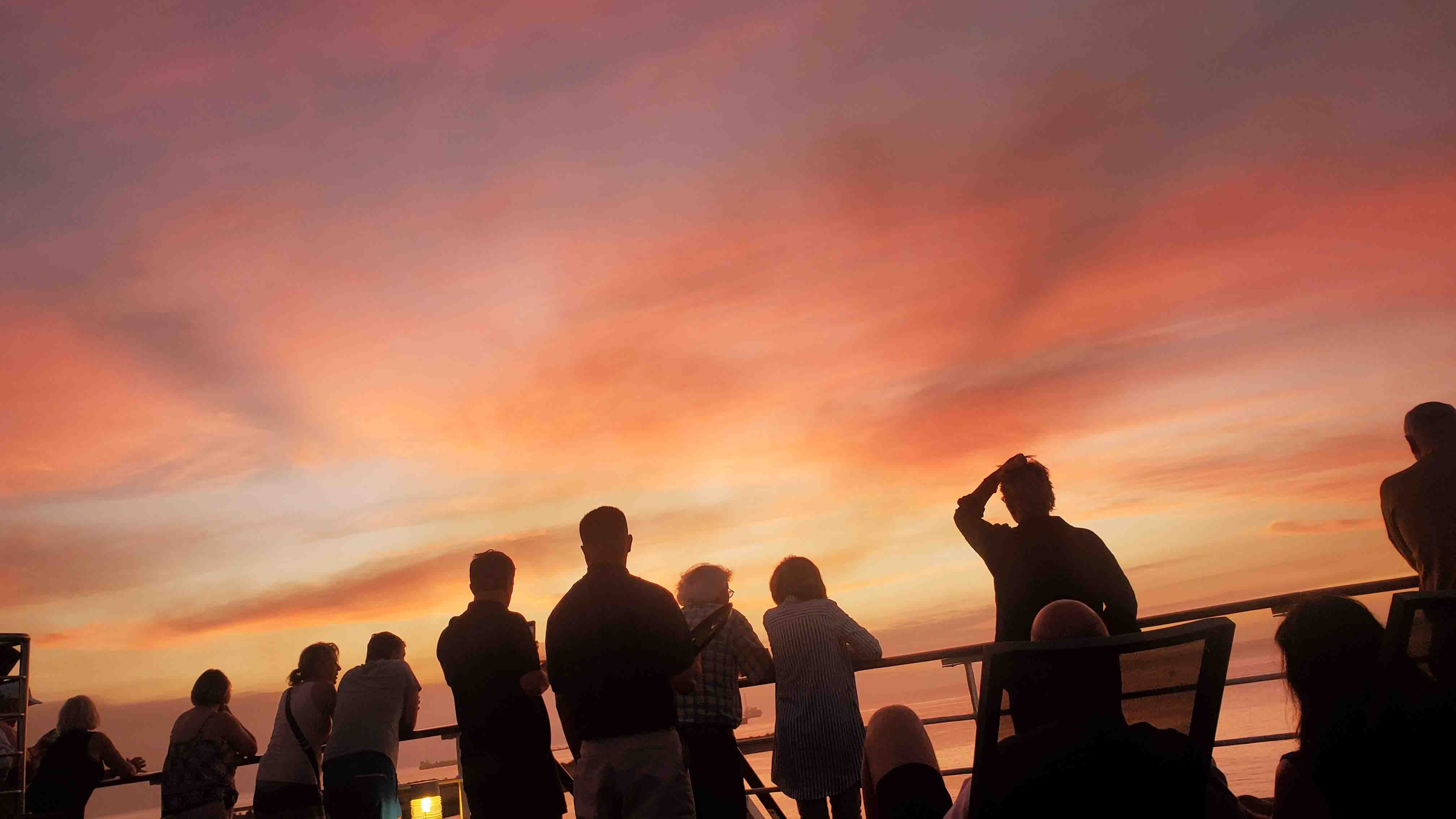 Liz and Amanda and I have taken to meeting on Deck 8, Aft, at 6pm while the weather holds. It’s nice to be out in the fresh air before dinner. We skipped the show. Our own company is enough fun.