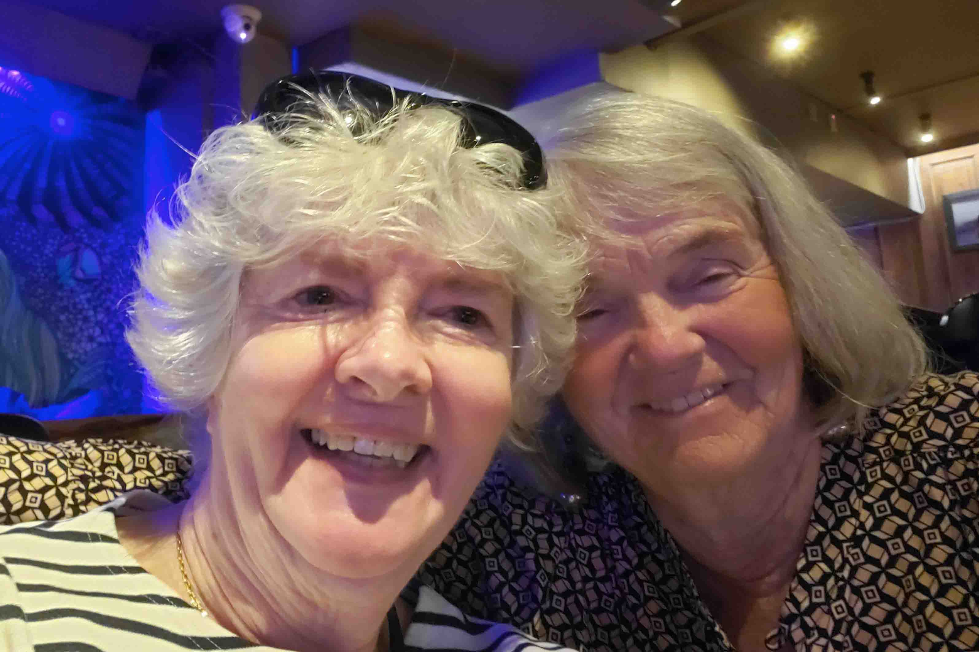 Then we brought Wanda and Katja back to the Zuiderdam and gave them a tour of the ship and a cocktail by the pool. Too soon, we had to hurry them off, because the ship was going to sail. It was a very fun day.