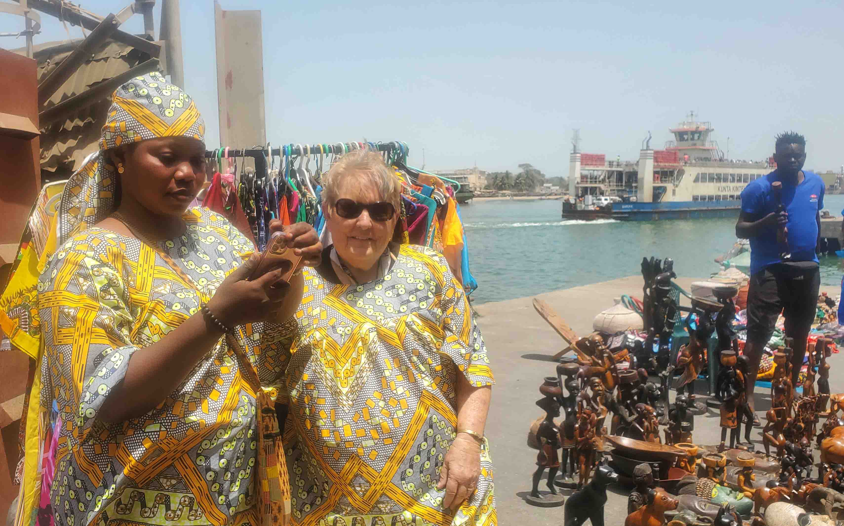 Then they set up a very nice market on the pier, where I found out I had paid at least $20 too much for the wooden mask I had got in Abidjan and bought Robbie a life-sized pal.