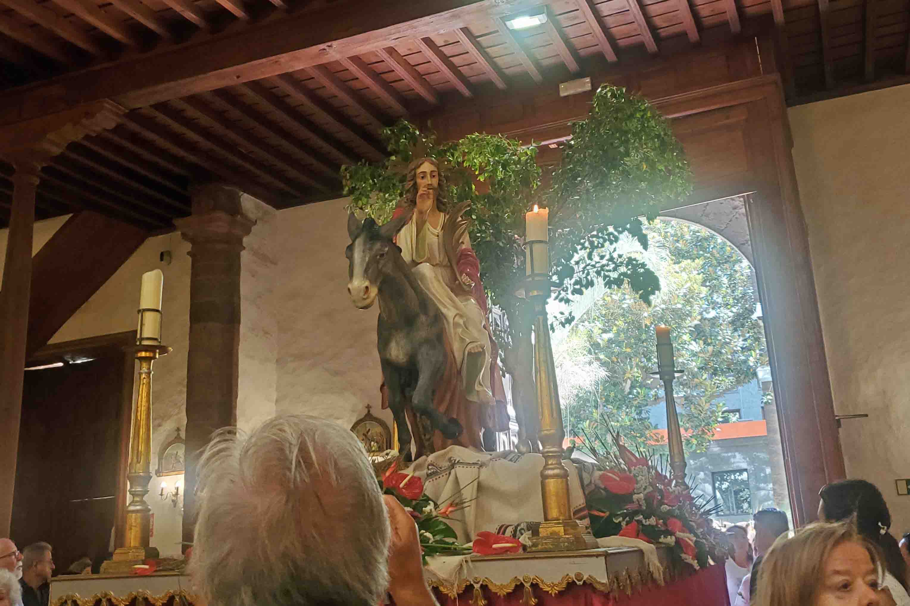 The next day was Palm Sunday in Santa Cruz, Tenerife, Canary Islands. Nona and I got off around eleven to walk into town. It was farther than we had hoped but a doable project. The approach was pretty, and even interesting, with lots to read about the famous travelers who had visited before us, like Charles Darwin, et al. Nona wanted to peek into the church. She found out mass was starting in 15 minutes and I was happy to join her in attending. I don’t usually go to church, except for weddings and funerals, but 11 years of the Sisters of the Holy Names of Jesus and Mary had taught me all I need to know to behave myself appropriately.
