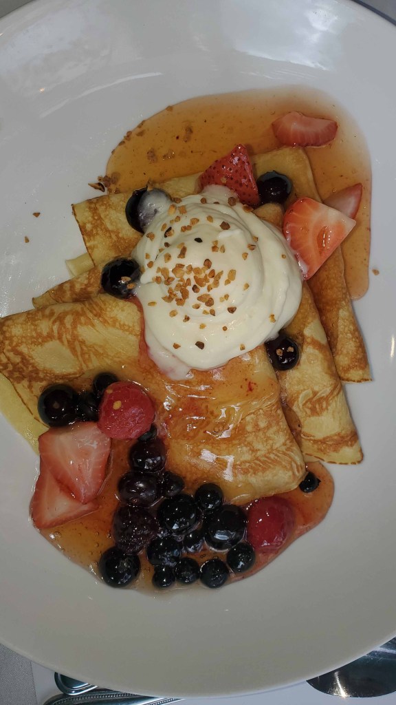 I had a massage booked at the spa, with Titaka, but the ship had commandeered her for training. The Spa manager tried to convince me to take another kind of massage or to reschedule. I tried to learn more about the different styles of massage and couldn’t wrap my mind around it. All I knew was that it was stressing me out and that’s not what a massage is supposed to do. So, I cancelled the whole package of them and felt immediately better. I worked in my room for a bit and went to Elliot Finkle’s Classical piano recital at two o’clock. I love a good pianist playing classical music. It was a small venue and it was packed. I worked some more, went to Happy hour and dinner. The entertainment was the movie “The Woman King” with Viola Davis. She is always good but I wouldn’t have wasted my time on it, if I wasn’t on board ship.